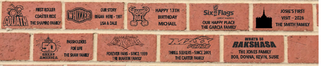 Six Flags Great America reserves the right to deny any brick inscriptions not in line with Six Flags policies.